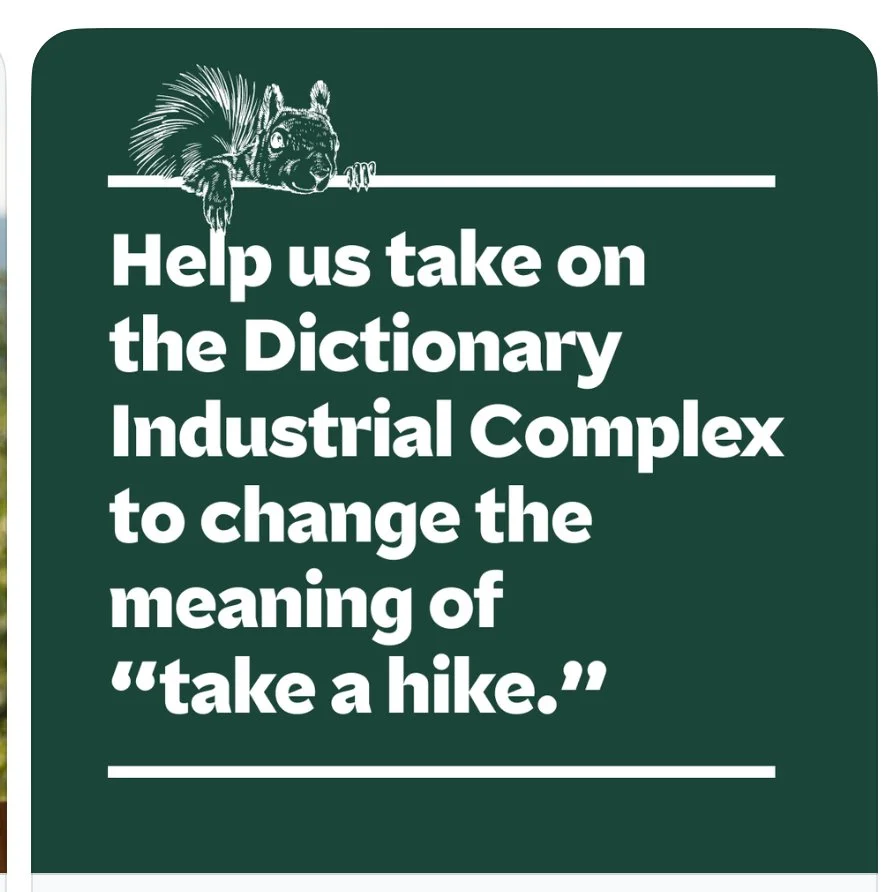 The current definition of Take a Hike means something bad. The Applachian Trail Conservancy takes offense to that.
